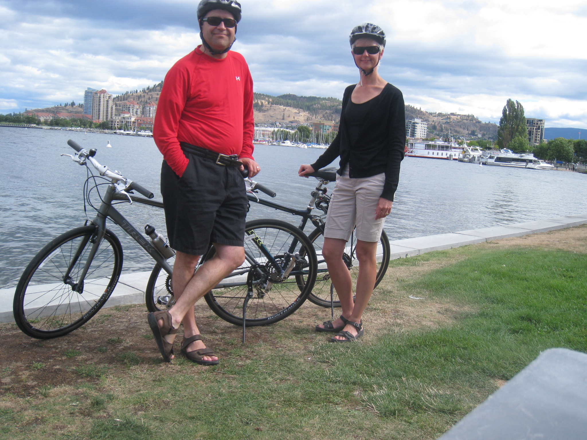 We have been in the Kelowna area for a few days after being invited by Harry Buddle and spouse Judy. (Harry will be Rotary 5370 District Governor the year before me, 2011/2012). They have a summer home here near Oyama, BC overlooking the lake. When they invited us for the weekend we thought about it for a day, but – being kid-less now – thought “Why not!?”. Friday we drove the 1000 km’s in 11 hours or so. It was very smoky from the forest fires. Our eyes watered at times but it was a pleasant drive none-the-less. We stopped in Kamloops for a great bike ride…