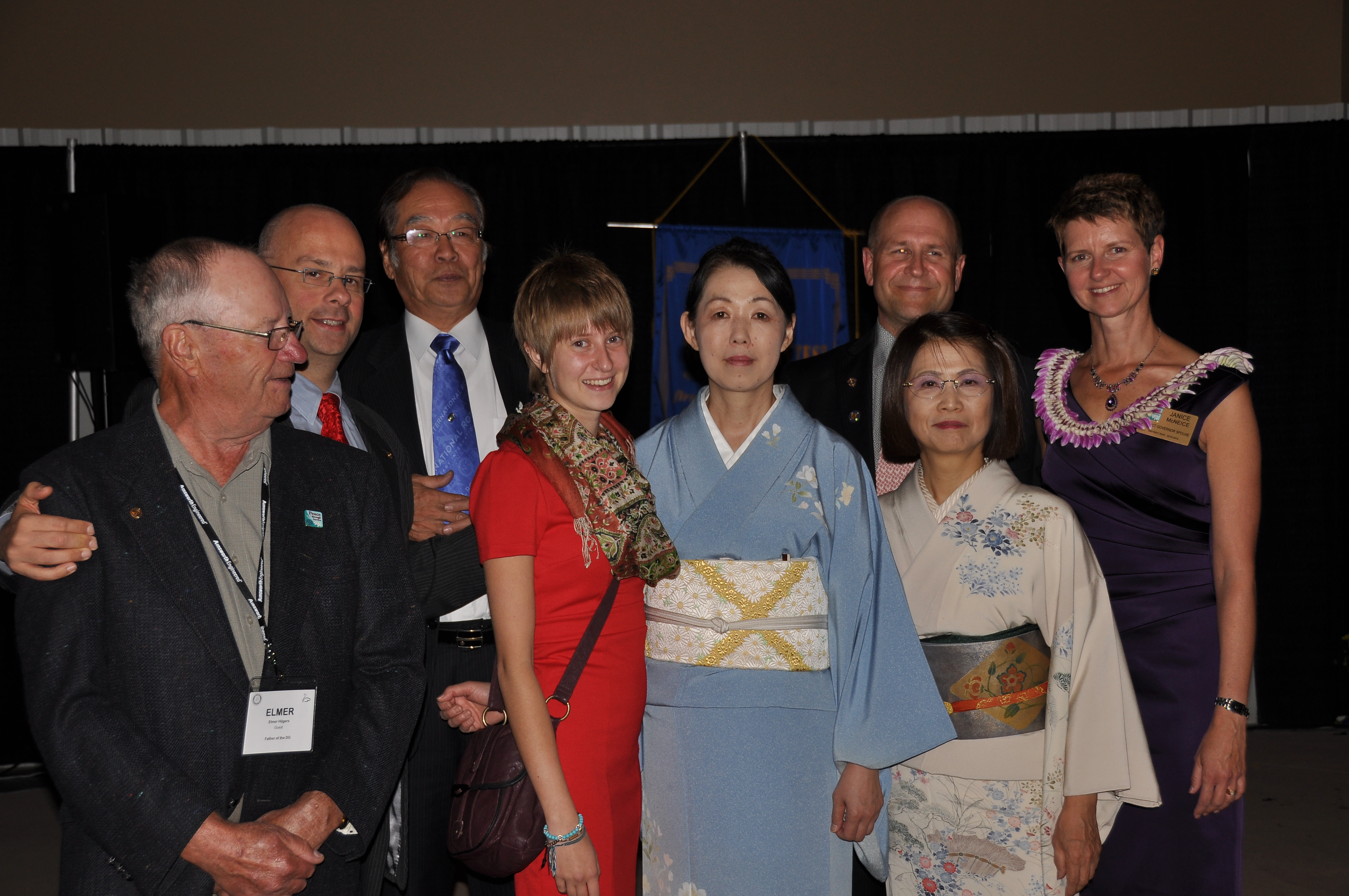 4 Rotarians from the Rotary Club of Koriyama South, Fukushima Japan attended the Rotary District 5370 Conference. Here with Karly are her Japanese families along with her (real) Grandpa Elmer and family. Missing from the photo is her Grandma Nici who also attended